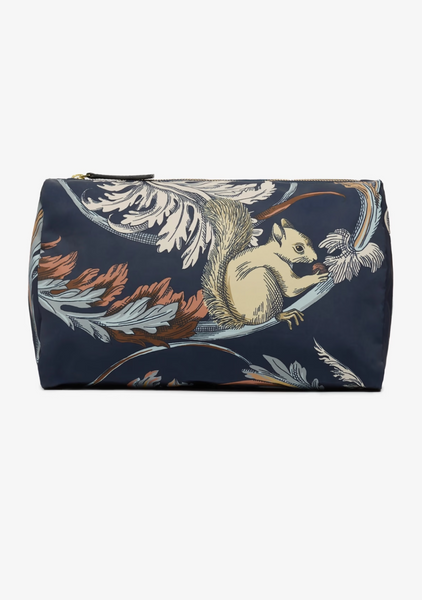 Lightweight, flexible, and highly functional, the Medium Rococo Case in Navy Blue is crafted from recycled polyester technical fabric that adapts to any volume. Designed for added organization, it features two interior pockets, including one zipped, and showcases a charming Rococo-inspired squirrel print in light yellow, blue, and brown against a navy background. Finished with 100% leather and a secure zipper closure, it’s the perfect accessory for stylishly storing your essentials.