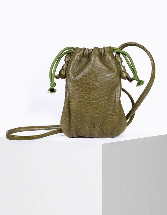 Margot Double Sac Bretelle in Deep Pine Embossed Croco