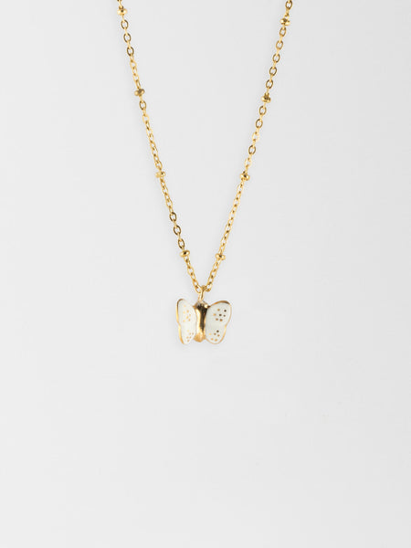 Necklace made of porcelain, glass beads and brass plated with fine gold. Nickel-free and hypoallergenic metal.