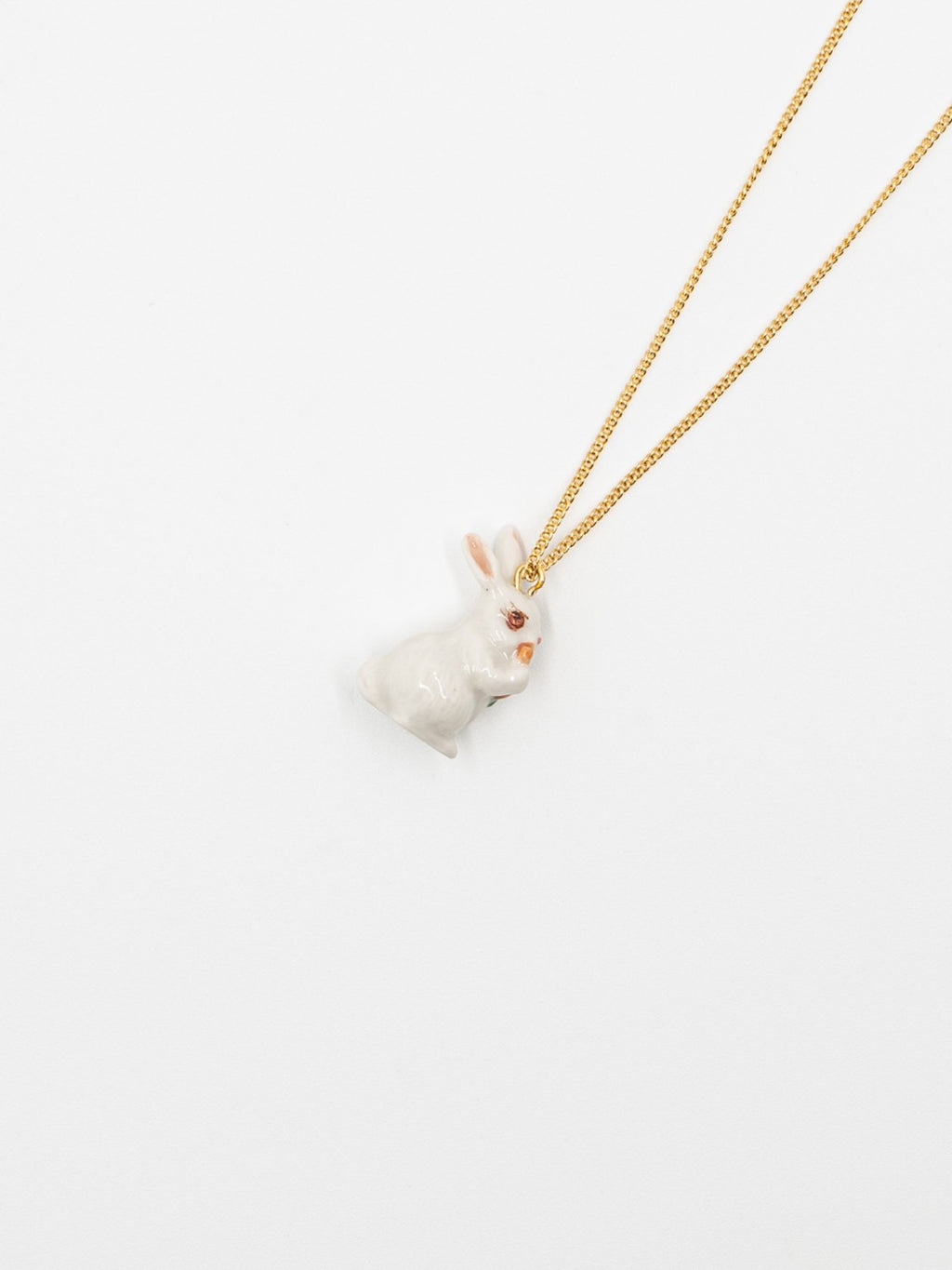 White Rabbit with Carrot Necklace in Gold