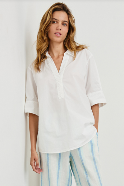 Crafted from airy cotton poplin, the Juda is a shirt specifically designed to keep you comfortable. With a roomy fit, v-neckline and collar, this is an essential lightweight pullover.
