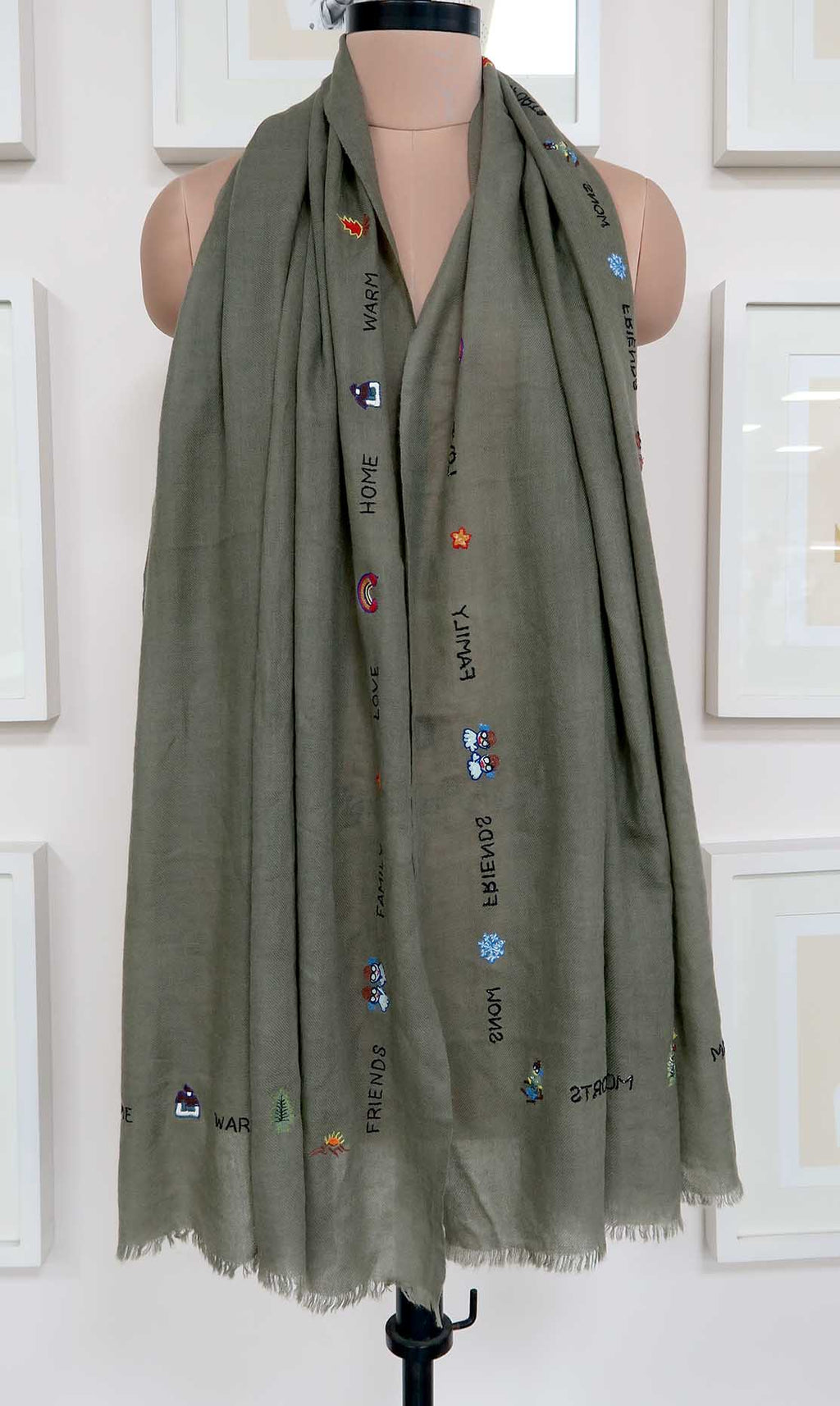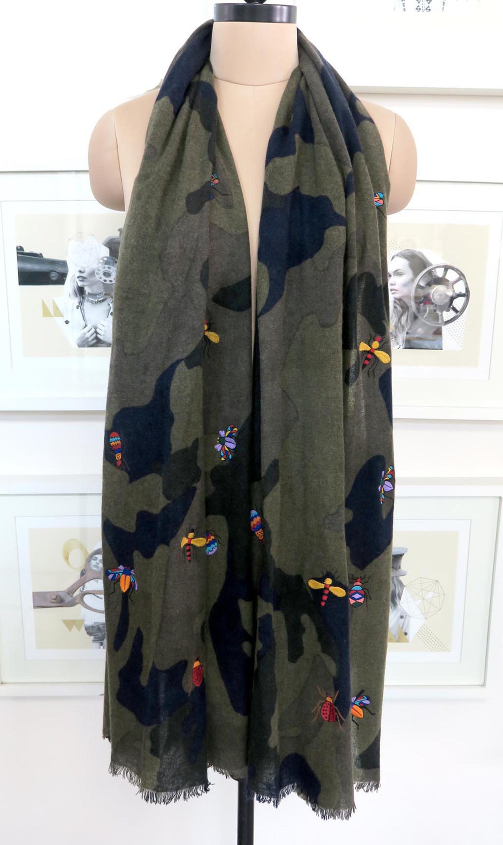 Hildanova Insect Border Scarf in Olive Khaki Camo