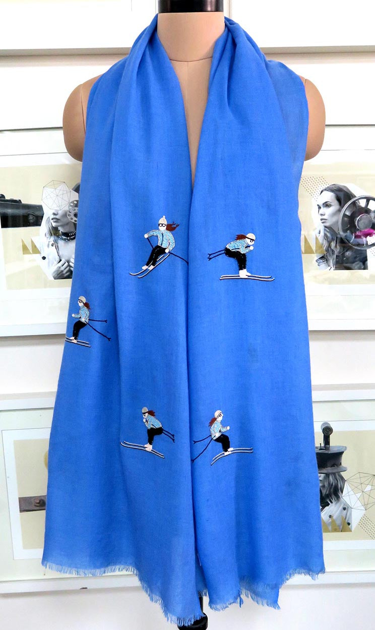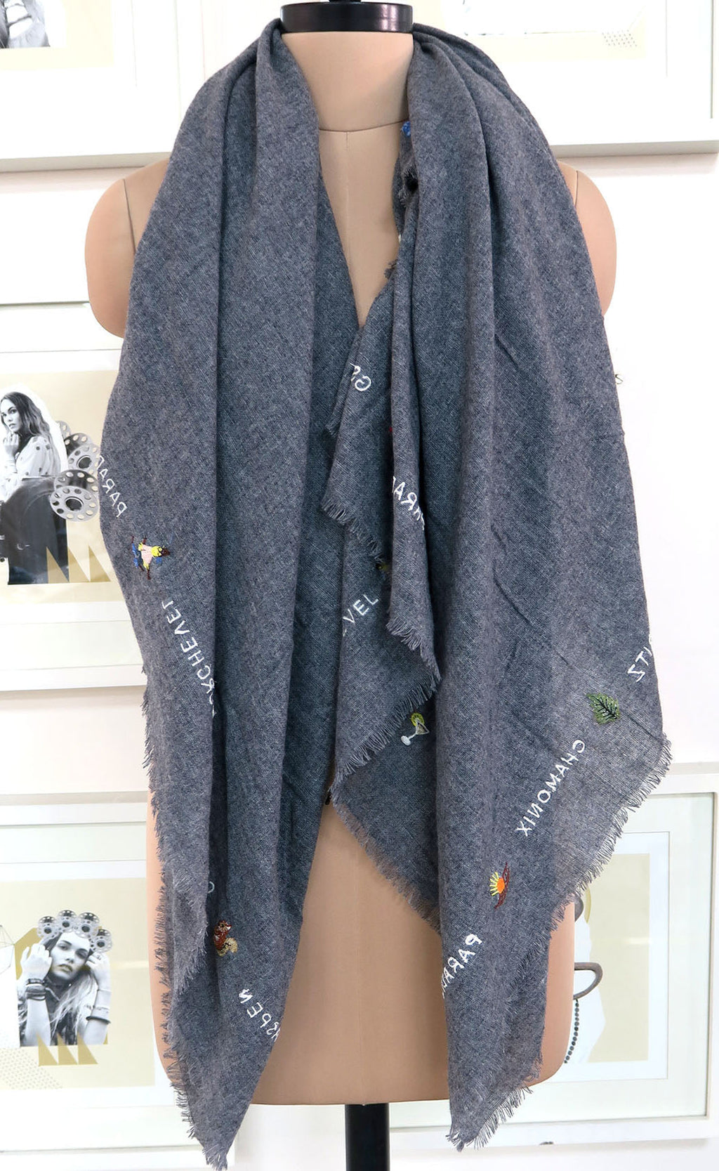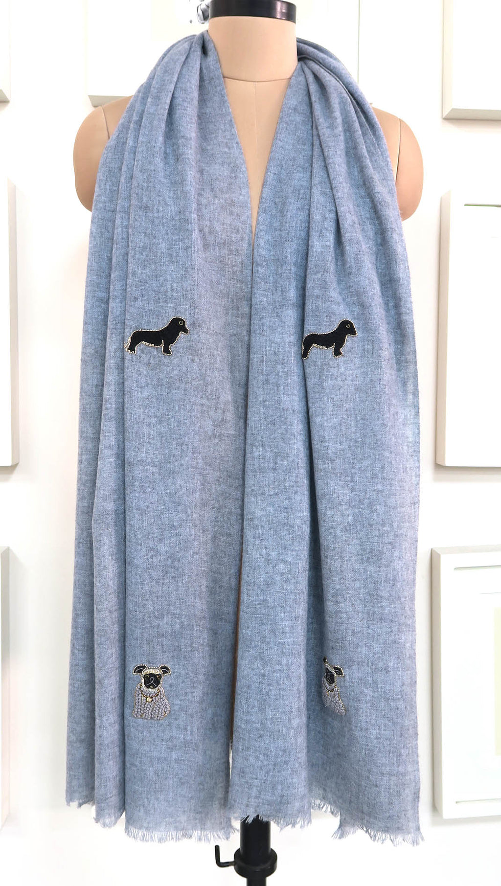 Enchanted Garden Velvet Scarf in Dusty Blue