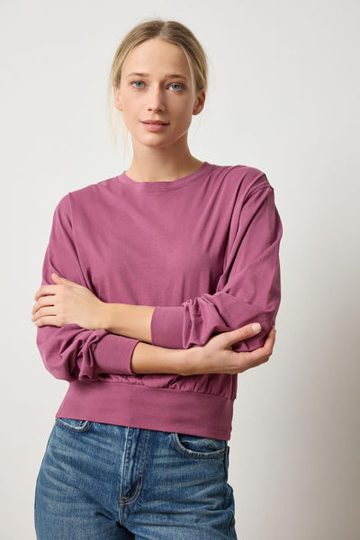 Ribbed Trim Easy Crew Shirt in Vintage Plum