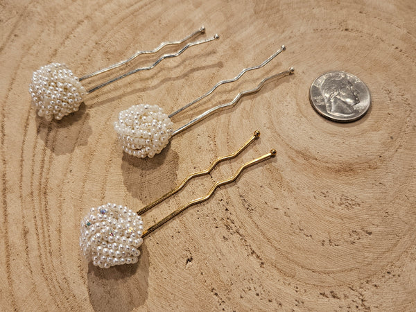 Large Vintage Pearl Knot Bobby Pin in Silver