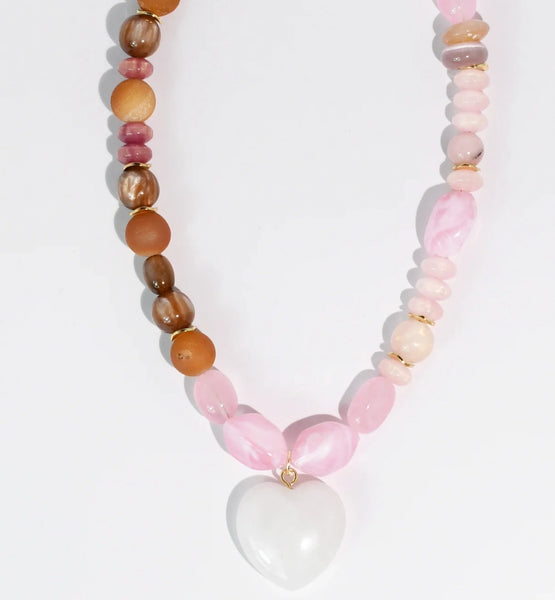 *This necklace has a rose quartz heart pendant. White is for style only!