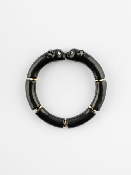 Porcelain, zircon and golden stainless steel stretch bracelet.