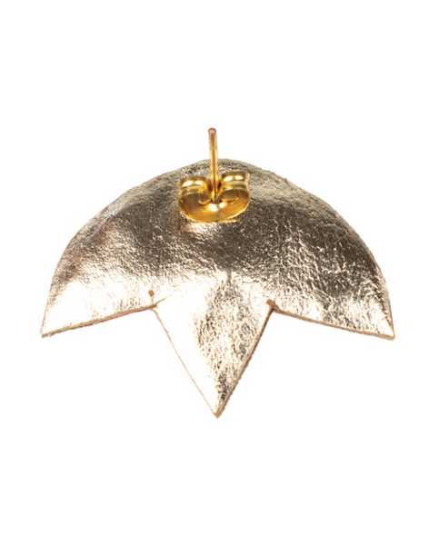 Earrings hand-embroidered with silk thread, set with a semi-precious stone and brass beads. Leather lining, anti-allergenic and stainless brass fastener.
