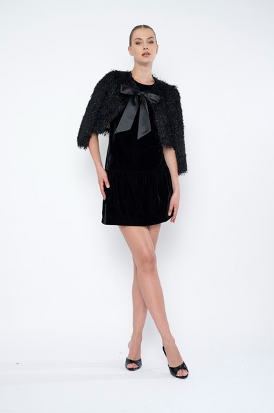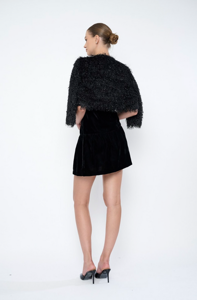The Francie Coat in Sable Black is an elegant textured cropped jacket, ideal for putting over dresses or paired with silk trousers for a sophisticated look. Try pairing this with high waisted jeans and a fitted top for a night out on the town.
