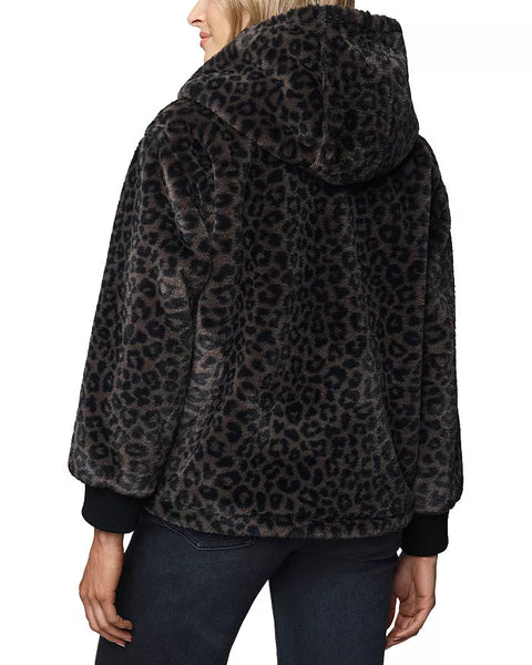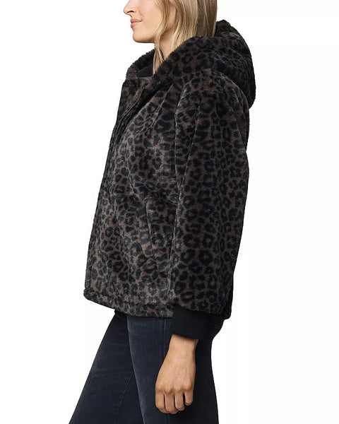 Top off your look with a touch of luxe texture in the Lucia Fur Zip Up Jacket. Crafted from ultra-soft faux fur in a rich black and dark brown leopard print, it’s as cozy as it is statement-making. The two-way zip front, ribbed cuffs, and fixed hood make it a perfect blend of function and flair, ideal for chilly days and bold moods alike.