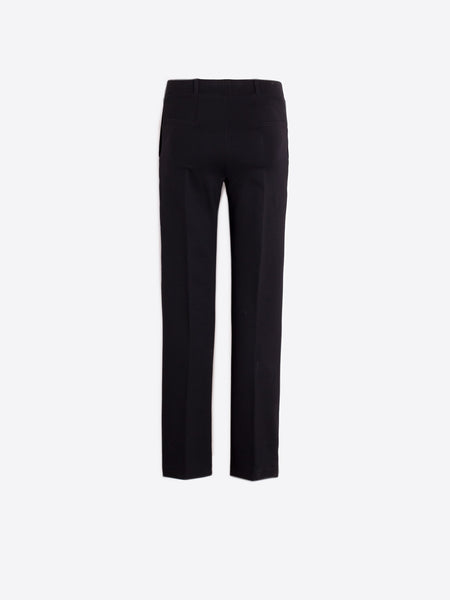 Elevate your look with the Martina Embroidered Trouser in Punto Roma Black. Crafted from a soft knit fabric, these straight-leg trousers feature decorative tiger embroidery in gold, pink, and orange along the front. Designed with front side pockets, back welt pockets, and a clean waistband with hook-and-zipper closure, they offer a tailored, polished finish. Perfectly paired with the matching Gadea Blazer for a coordinated statement suit.