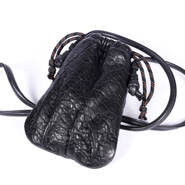 It closes with a climbing rope drawstring, and is easy to carry thanks to its 1.40 m adjustable black leather shoulder strap.