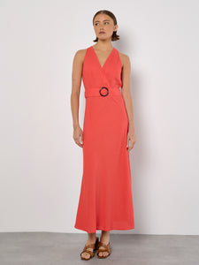 Easy, breezy, and effortlessly flattering the Sleeveless Faux Wrap Midi Dress in a juicy coral hue (aka Watermelon) is your new warm-weather go-to. Designed in a lightweight linen blend, it features a bra-friendly V-neckline, a flattering faux wrap silhouette, and an adjustable waist belt to cinch it just right. Whether you're heading to brunch, a backyard party, or a sunny stroll, this midi-to-maxi dress keeps things stylish and comfortable.